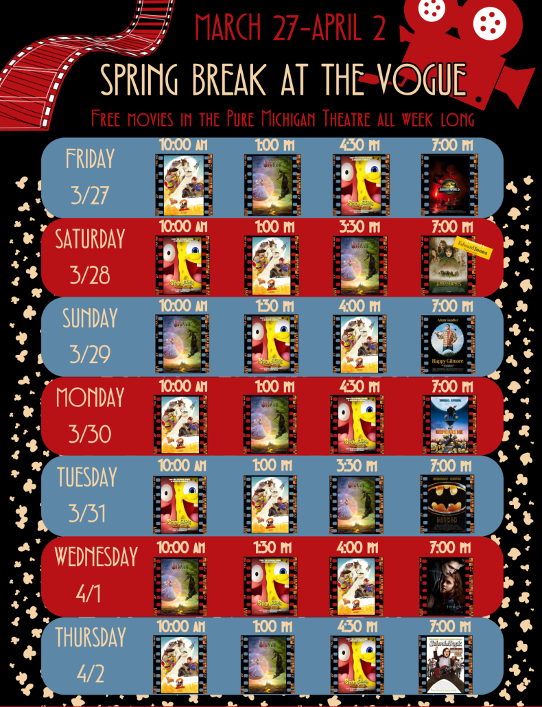 Bring patience! Enjoy those around you by respecting the personal space of others while you wait for everyone’s turn at the concessions counter. Remember, the Vogue is staffed almost entirely by volunteers who want everyone to feel welcome and special. You can help our volunteers serve you by helping children make candy selections or drink choices.